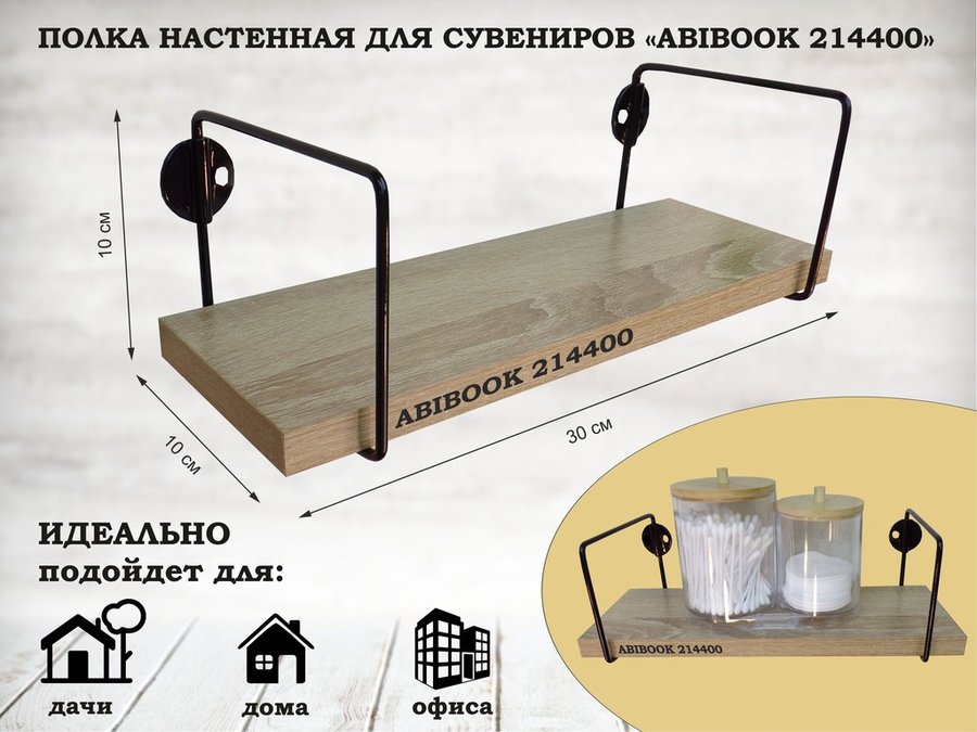 . Полки стильные глубина 10 см для сувениров "ABIBOOK" прямоугольный каркас