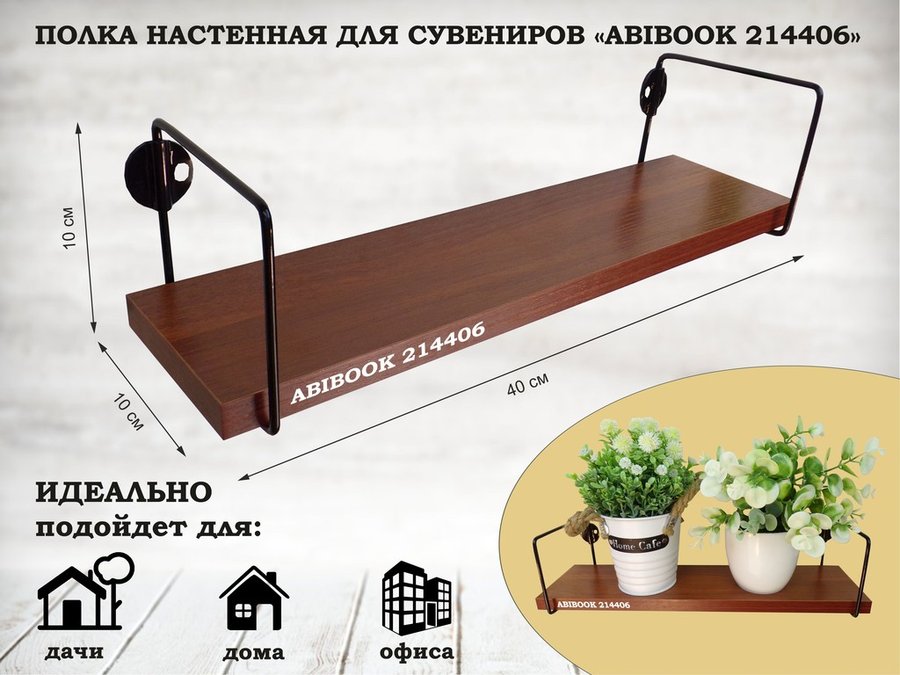 В корзину Купить в 1 клик Полка настенная для сувениров 10x 40 см венге ABIBOOK-214403