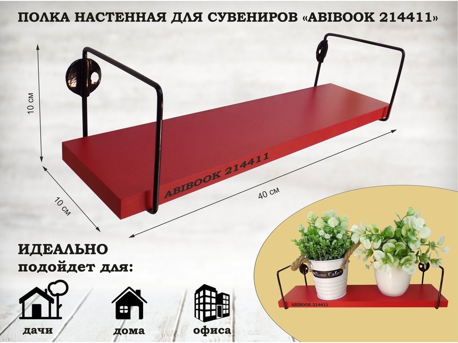 В корзину Купить в 1 клик Полка настенная для сувениров 10x 40 см красный ABIBOOK-214389