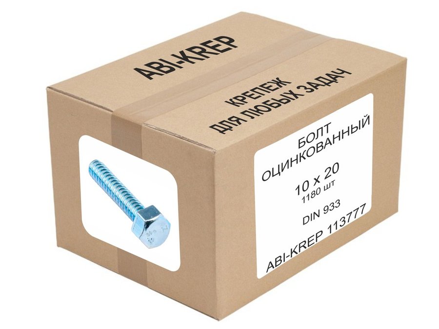 В корзину Купить в 1 клик Болт оцинкованный 10х 20 DIN 933 (1шт) "ABI-KREP 113777" ключ 17мм, 21,2гр цена за 1шт