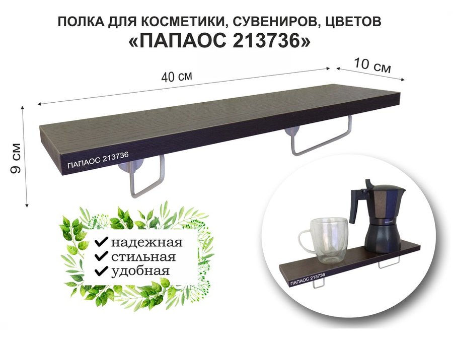 В корзину Купить в 1 клик Полка для косметики, сувениров, цветов, 40х10 см, высота 9 см, черный "ПАПАОС 213773" венге