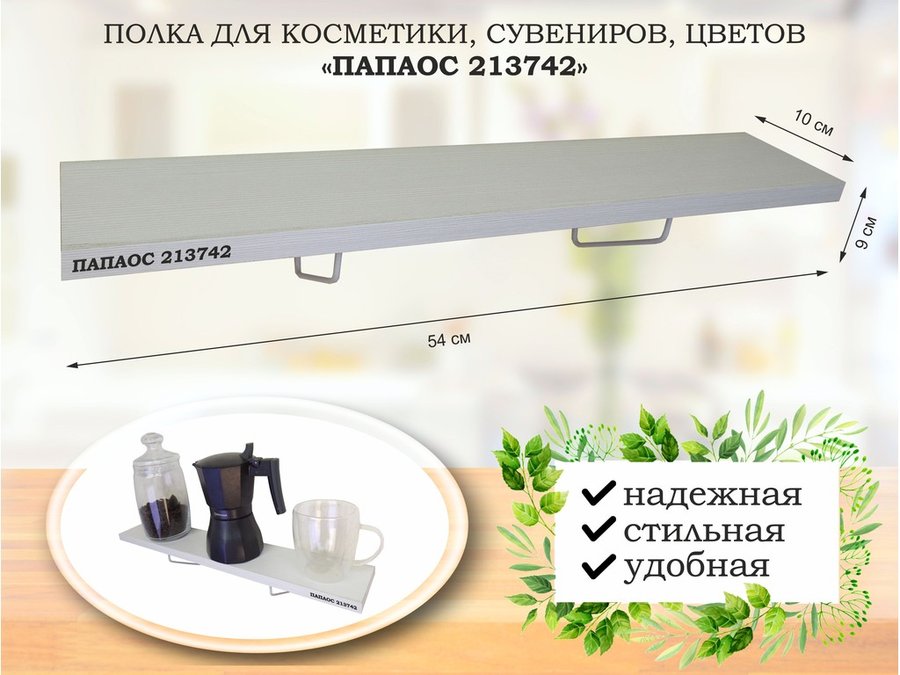 В корзину Купить в 1 клик Полка для косметики, сувениров, цветов, 54х10 см, высота 9 см, серый "ПАПАОС 213742" сосна