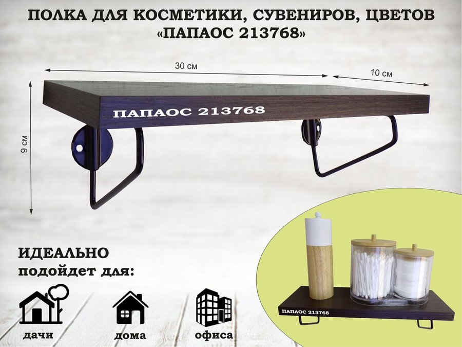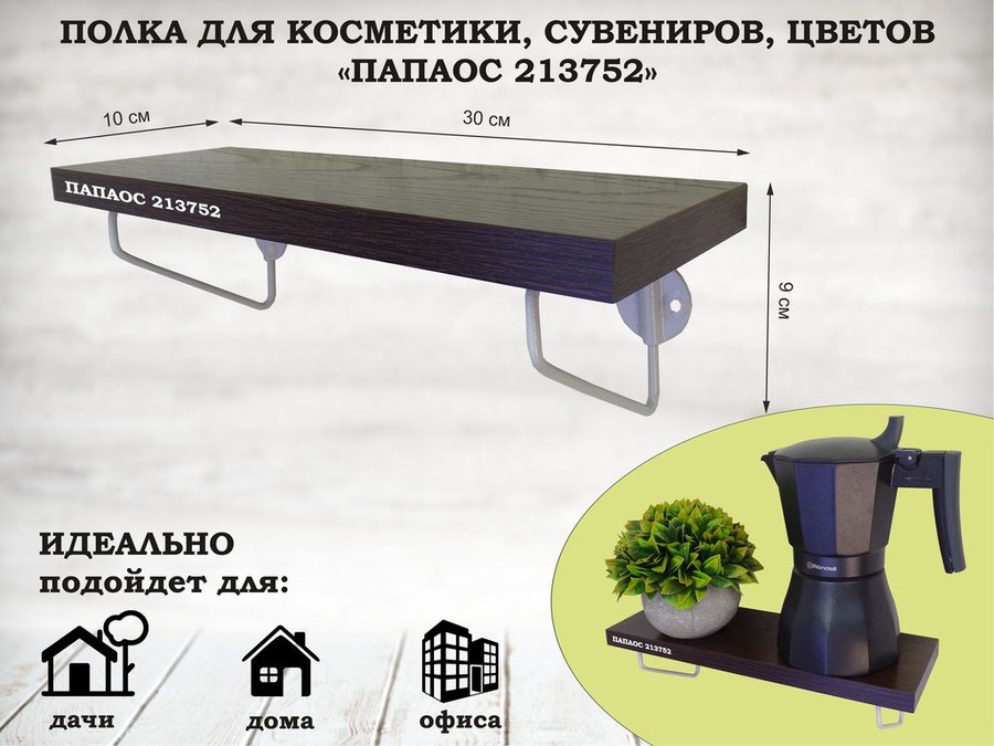 В корзину Купить в 1 клик Полка для косметики, сувениров, цветов, 30х10 см, высота 9 см, черный "ПАПАОС 213768" венге