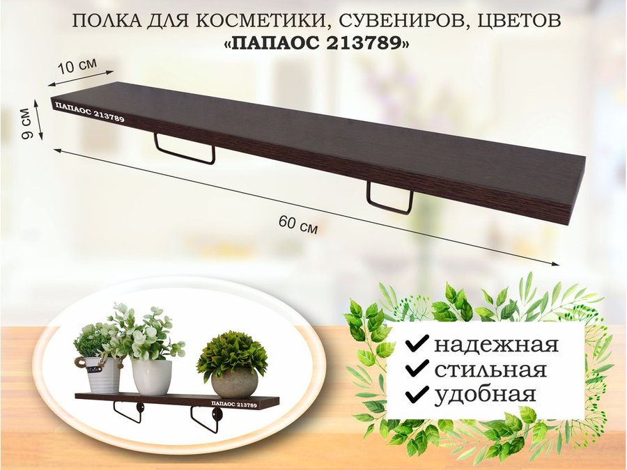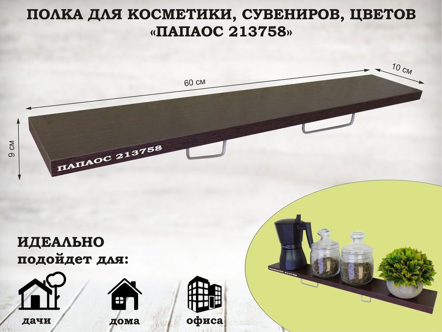 В корзину Купить в 1 клик Полка для косметики, сувениров, цветов, 60х10 см, высота 9 см, черный "ПАПАОС 213789" венге