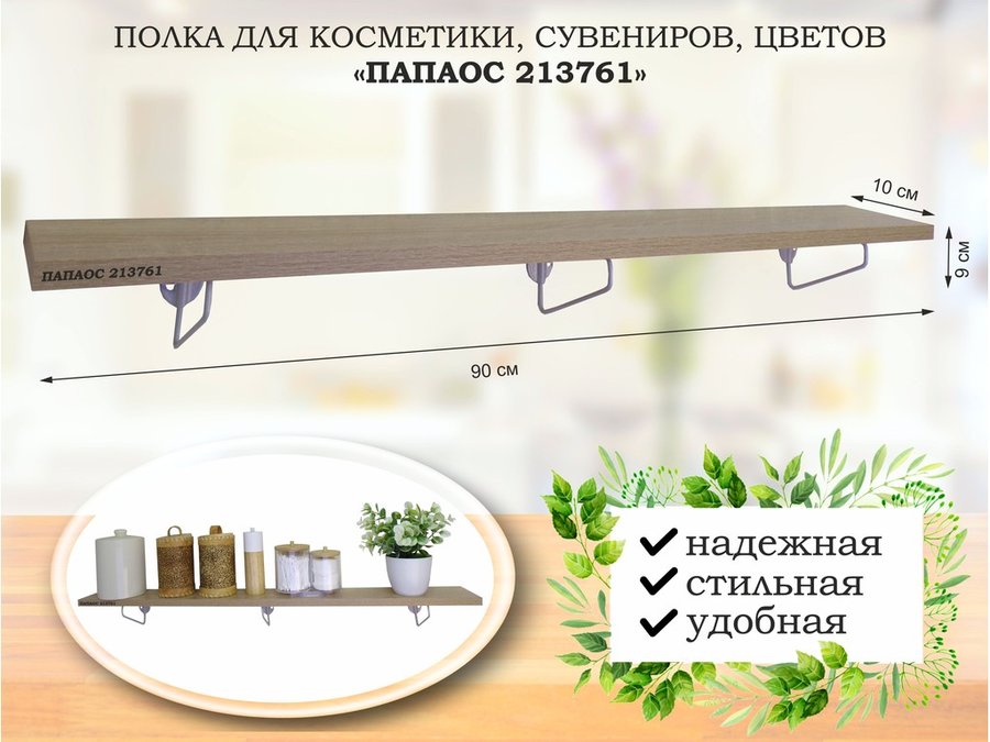 В корзину Купить в 1 клик Полка для косметики, сувениров, цветов, 90х10 см, высота 9 см, серый "ПАПАОС 213761" дуб сонома