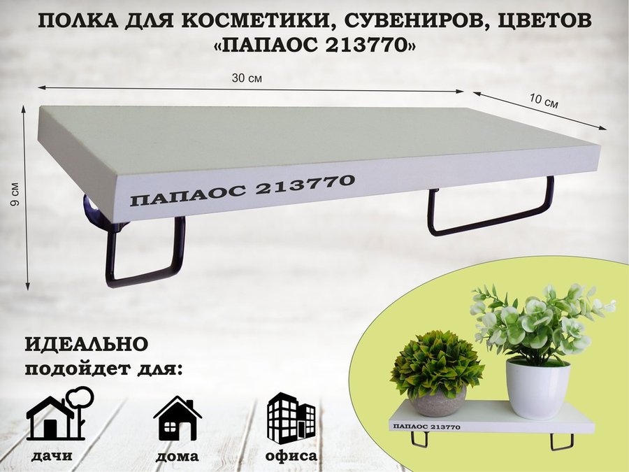 В корзину Купить в 1 клик Полка для косметики, сувениров, цветов, 30х10 см, высота 9 см, серый "ПАПАОС 213754" белый шагрень