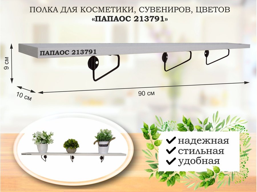 В корзину Купить в 1 клик Полка для косметики, сувениров, цветов, 90х10 см, высота 9 см, серый "ПАПАОС 213744" сосна