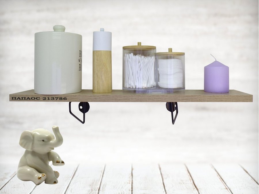Полка для косметики, сувениров, цветов, 54х10 см, высота 9 см, черный "ПАПАОС 213786" дуб сонома