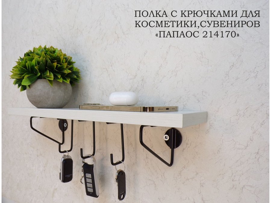 В корзину Купить в 1 клик Ключница, полка с крючками в прихожую 40х10 см, высота 9 см, черный "ПАПАОС 214170" сосна