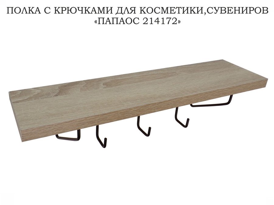 Ключница, полка с крючками в прихожую 40х10 см, высота 9 см, черный "ПАПАОС 214172" дуб сонома