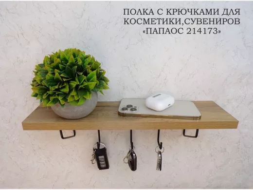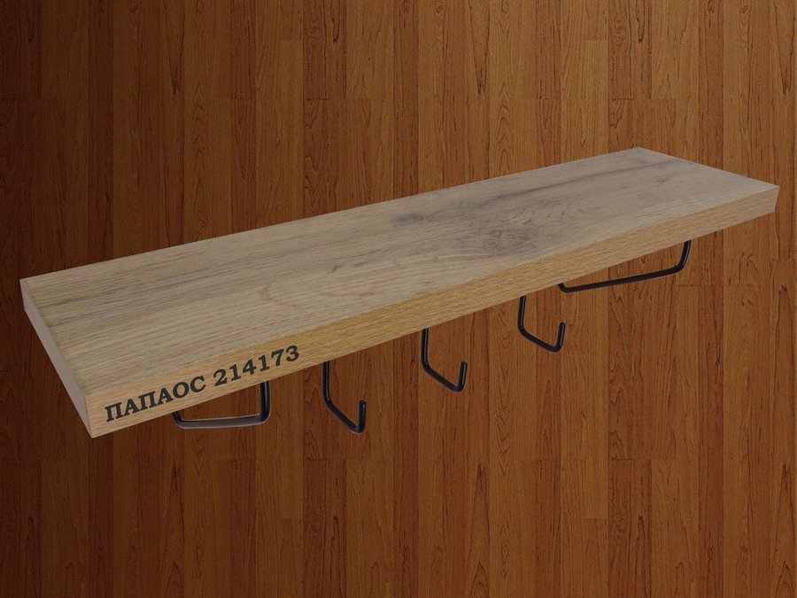 Ключница, полка с крючками в прихожую 40х10 см, высота 9 см, черный "ПАПАОС 214173" дуб вотан
