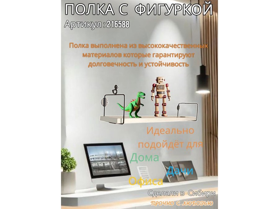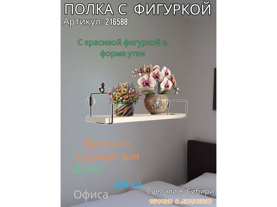 • Интересная полка с фигуркой, позволит разнообразить интерьер, сделать его непохожим, уникальным, запоминающимся.