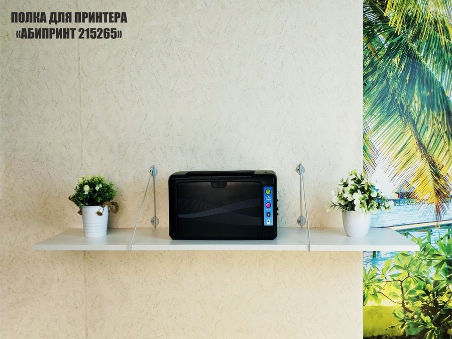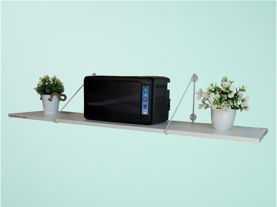 - Полка надежно крепится к стене при помощи анкеров или шурупов с дюбелями, на ней можно разместить принтер, бумагу