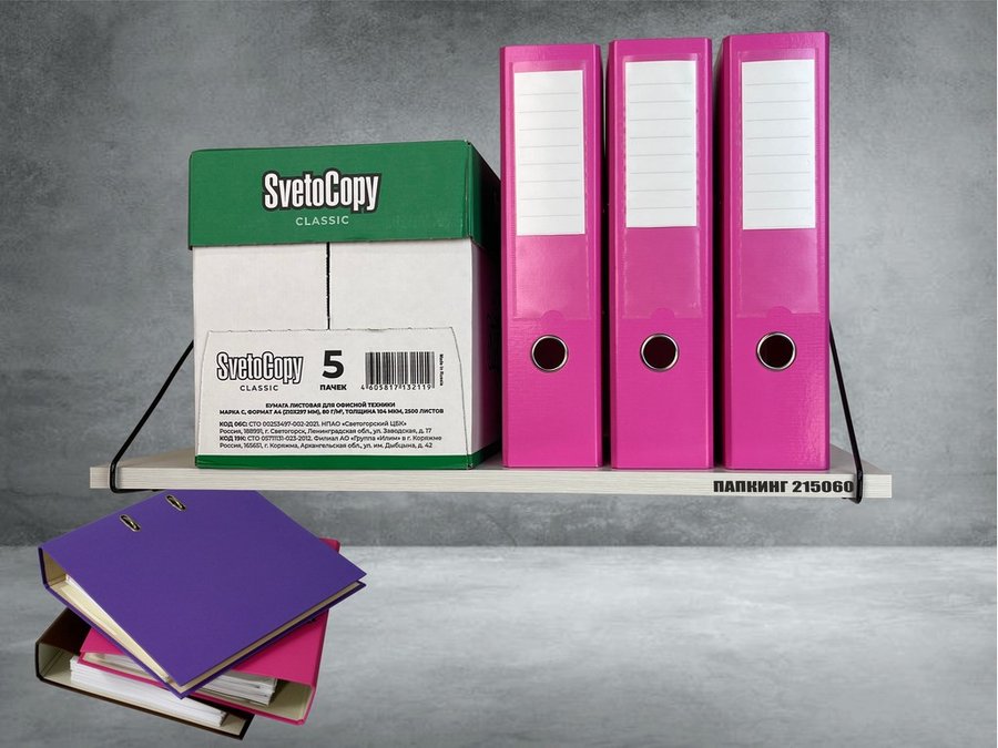Полка для папок и документов "ПАПКИНГ 215060" высота 26 см размер 60х30 см черный и сосна выбеленная