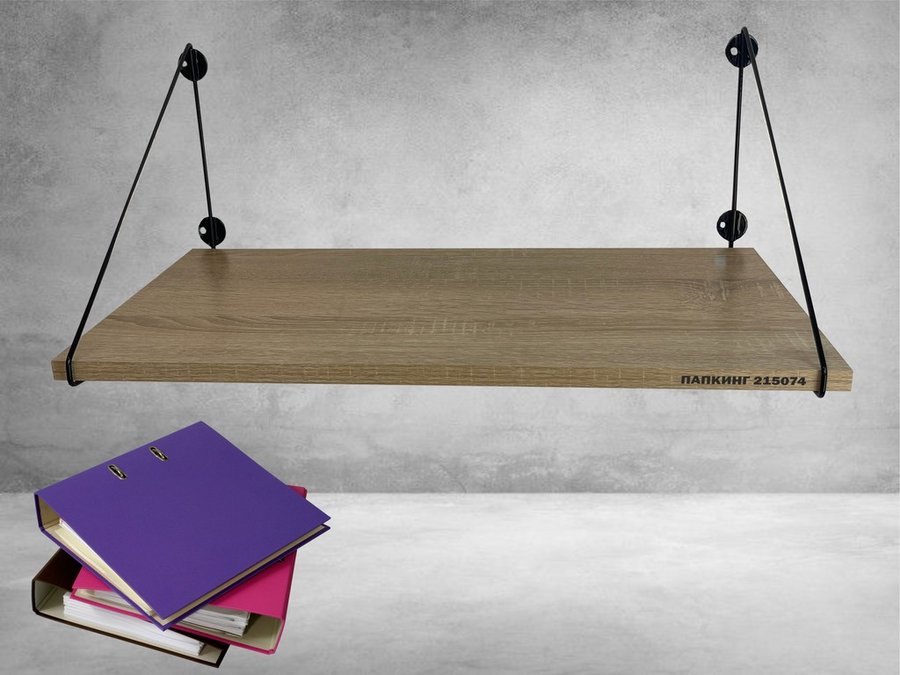 Полка для папок и документов "ПАПКИНГ 215074" высота 26 см размер 60х30 см черный и дуб сонома