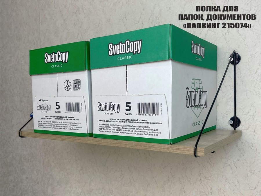 - Полка надежно крепится к стене при помощи анкеров или шурупов с дюбелями, на ней можно разместить папки, документы и многое другое