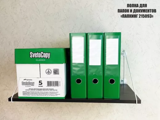 • Полка надежно крепится к стене при помощи анкеров или шурупов с дюбелями, на ней можно разместить папки, документы и многое другое