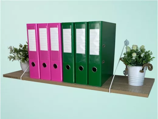 • Полка надежно крепится к стене при помощи анкеров или шурупов с дюбелями, на ней можно разместить папки, документы