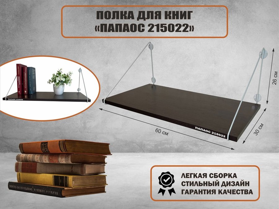 В корзину Купить в 1 клик Полка для книг "КНИГОКРЕП 215075" высота 26 см размер 60х30 см черный и венге