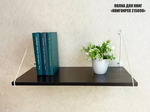 Полка для книг "КНИГОКРЕП 215090" высота 26 см размер 60х30 см белый и венге