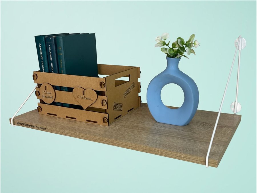 Полка для книг "КНИГОКРЕП 215091" высота 26 см размер 60х30 см белый и дуб сонома