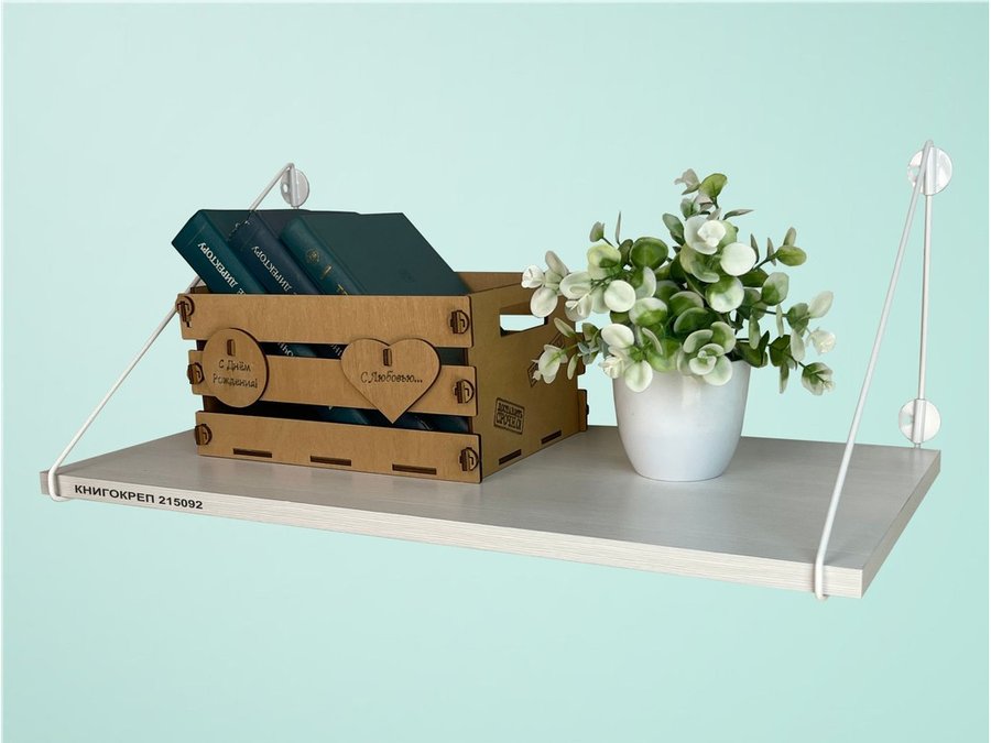В корзину Купить в 1 клик Полка для книг "КНИГОКРЕП 215092" высота 26 см размер 60х30 см белый и сосна выбеленная