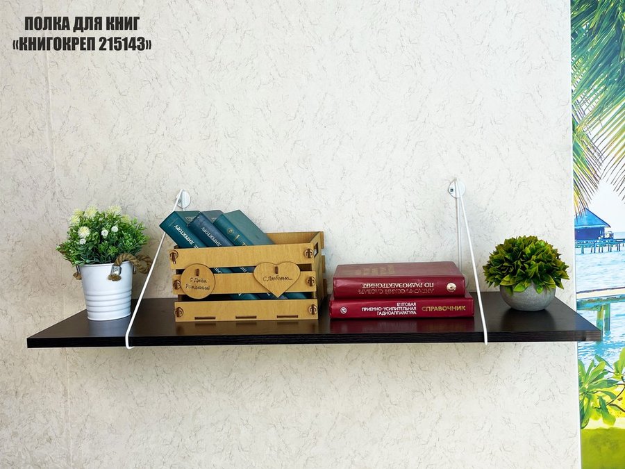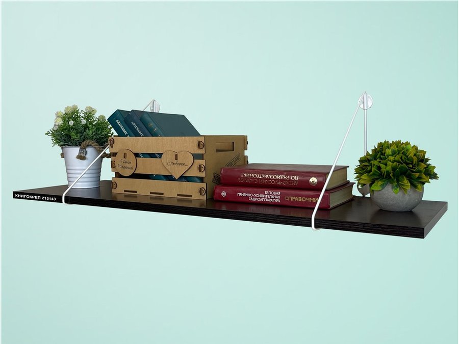 Полка для книг "КНИГОКРЕП 215143" высота 26 см размер 90х30 см белый и венге