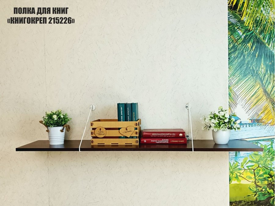 Полка для книг "КНИГОКРЕП 215226" высота 26 см размер 120х30 см белый и венге