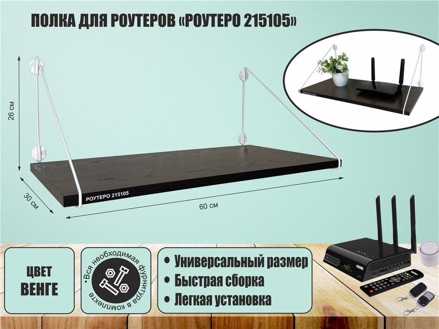 В корзину Купить в 1 клик Полка для роутеров "РОУТЕРО 215066" высота 26 см размер 60х30 см черный и венге