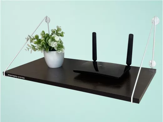 - Полка надежно крепится к стене при помощи анкеров или шурупов с дюбелями, на ней можно разместить роутер и многое другое