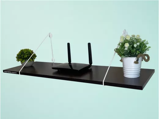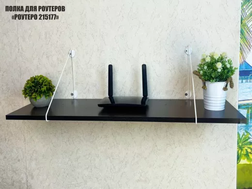 • Полка надежно крепится к стене при помощи анкеров или шурупов с дюбелями, на ней можно разместить роутер