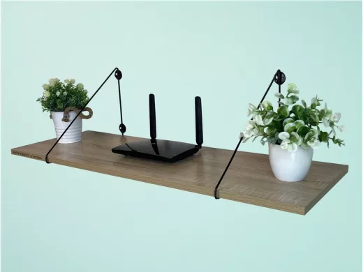 - Полка надежно крепится к стене при помощи анкеров или шурупов с дюбелями, на ней можно разместить роутер