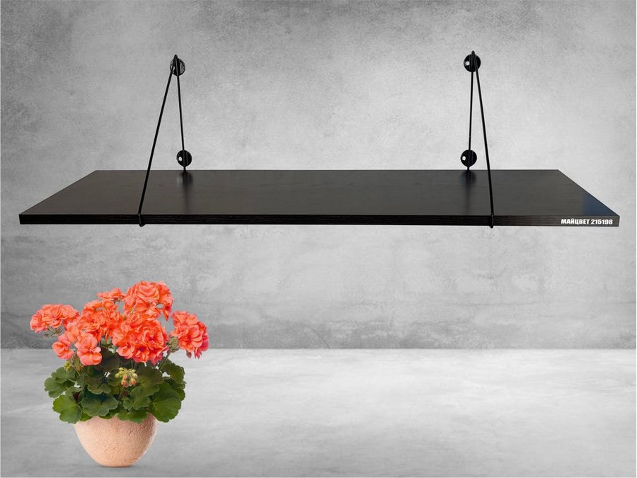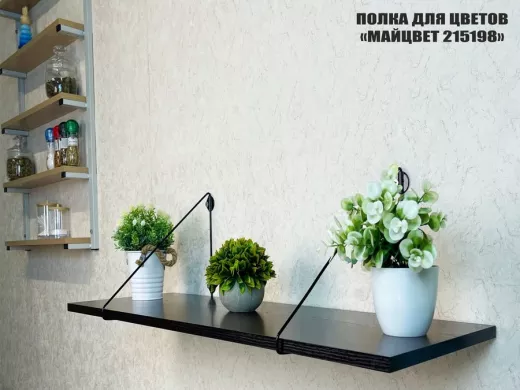 Полка выдержит тяжелые цветочные горшки с растениями, фоторамки, книги, сувениры и много другое.