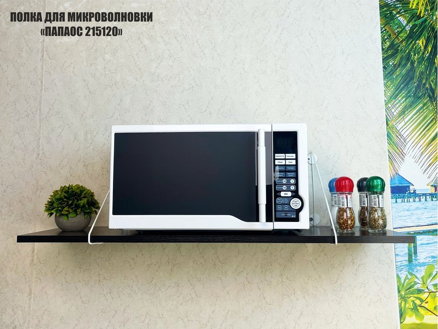 В корзину Купить в 1 клик Полка для микроволновки размер 90х30 см "ПАПАОС 215120" высота 26 см белый и венге