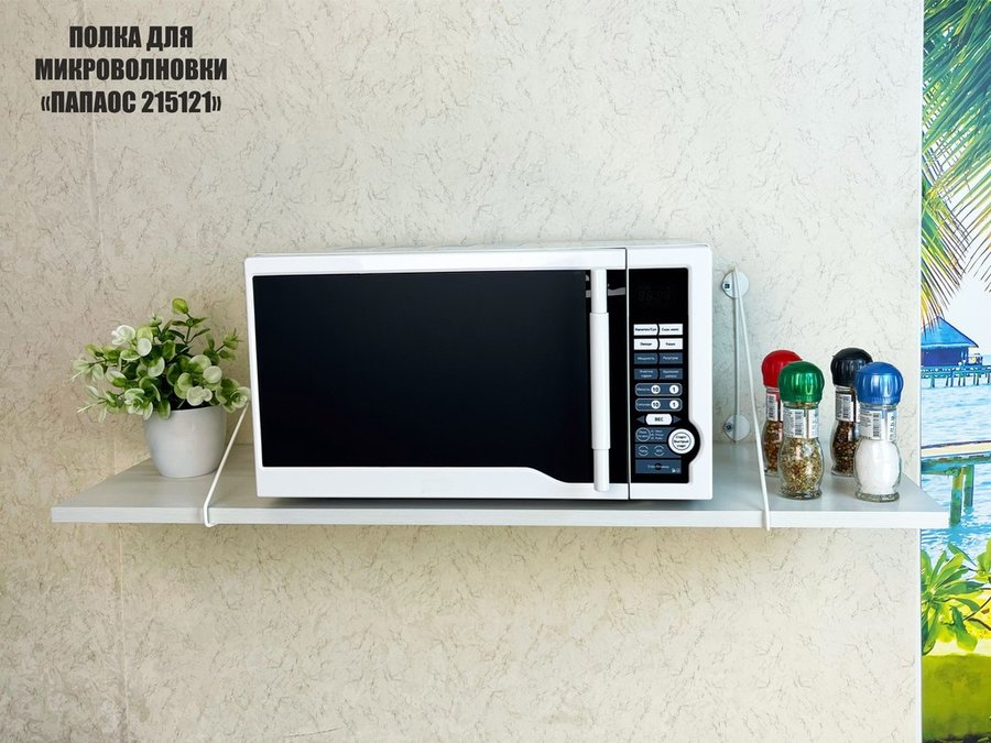 В корзину Купить в 1 клик Полка для микроволновки размер 90х30 см "ПАПАОС 215121" высота 26 см белый и сосна выбеленная