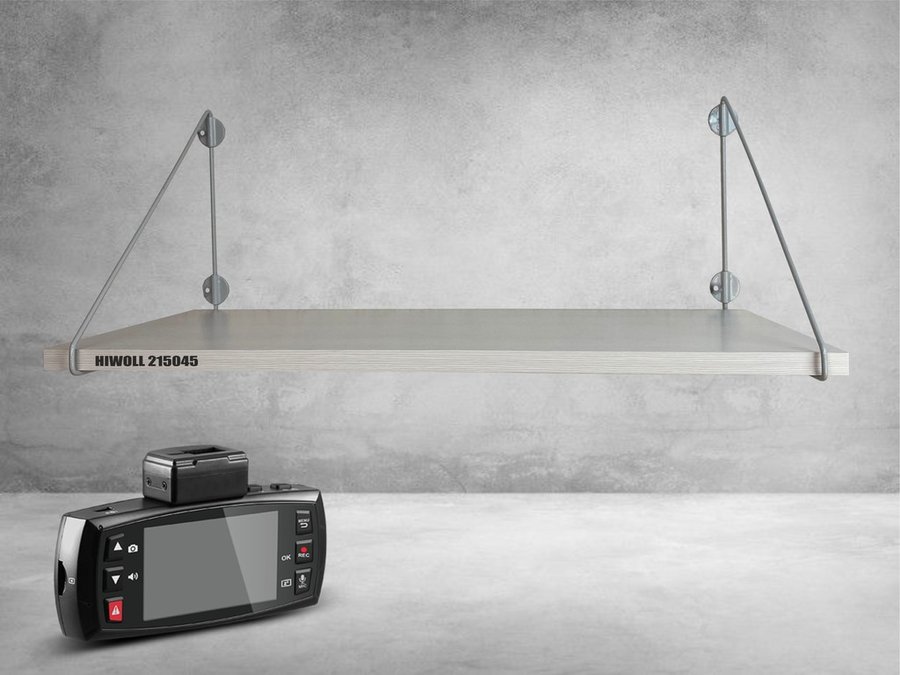 Полка для видеорегистратора и монитора "HIWOLL 215045" высота 26 см размер 60х30 см серый и сосна