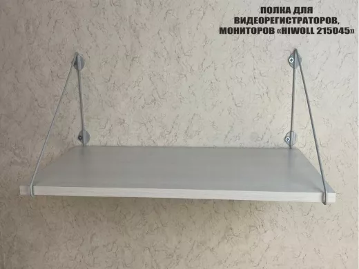 Полка надежно крепится к стене при помощи анкеров или шурупов с дюбелями, на ней можно разместить видеорегистратор, монитор и многое другое