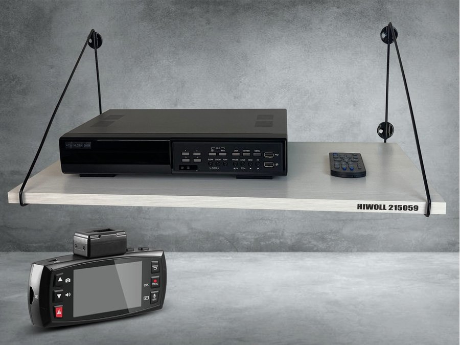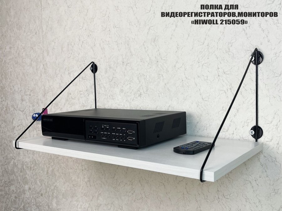 • Полка надежно крепится к стене при помощи анкеров или шурупов с дюбелями, на ней можно разместить видеорегистратор, монитор и многое другое