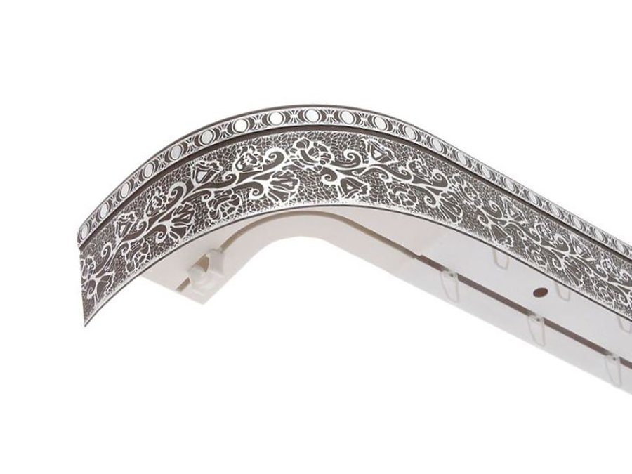 В корзину Купить в 1 клик 250см карниз КРУЖЕВО СЕРЕБРО ШОКОЛАД 2х рядный с декор. планкой 70мм в инд. упаковке. ультракомпакт