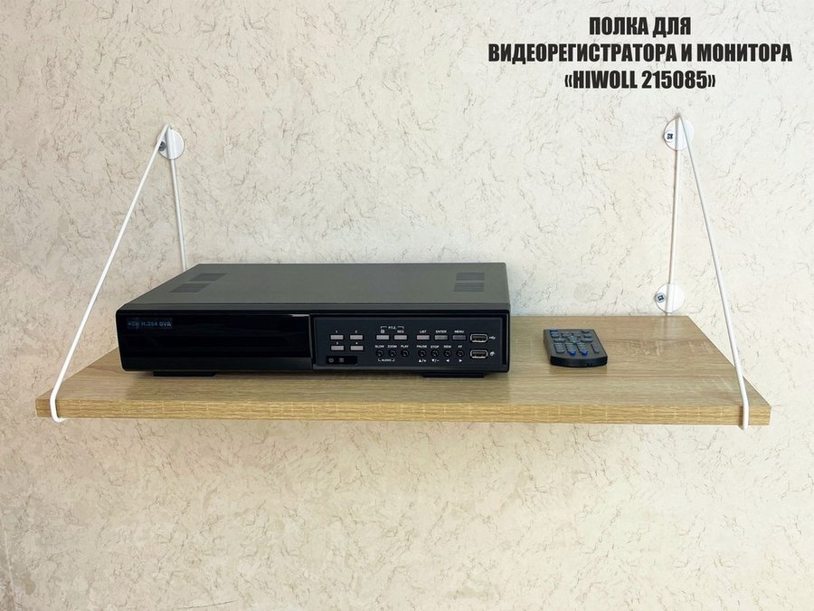 Полка для видеорегистратора и монитора "HIWOLL 215085" высота 26 см размер 60х30 см белый и дуб