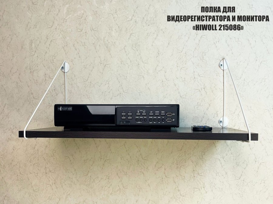 - Полка надежно крепится к стене при помощи анкеров или шурупов с дюбелями, на ней можно разместить видеорегистратор, монитор и многое другое