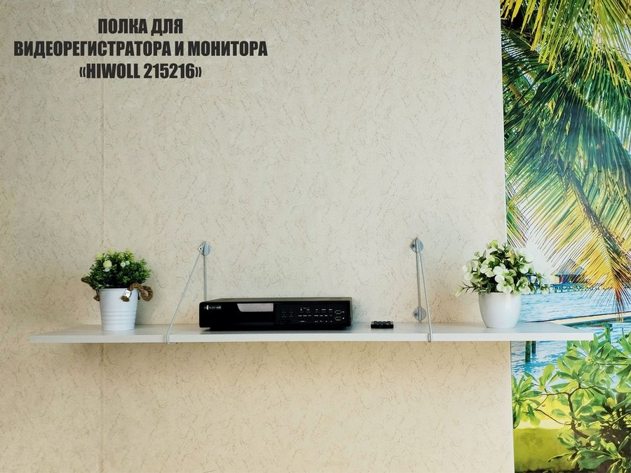 Полка для видеорегистратора и монитора "HIWOLL 215216" высота 26 см размер 120х30 см серый и сосна
