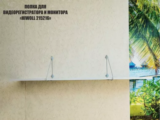 - Полка надежно крепится к стене при помощи анкеров или шурупов с дюбелями, на ней можно разместить видеорегистратор, монирот