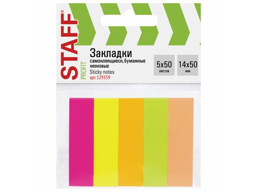 В корзину Купить в 1 клик Закладки клейкие "BR-78934" НЕОНОВЫЕ бумажные, 50х14мм, 5 цветов x 50 листов