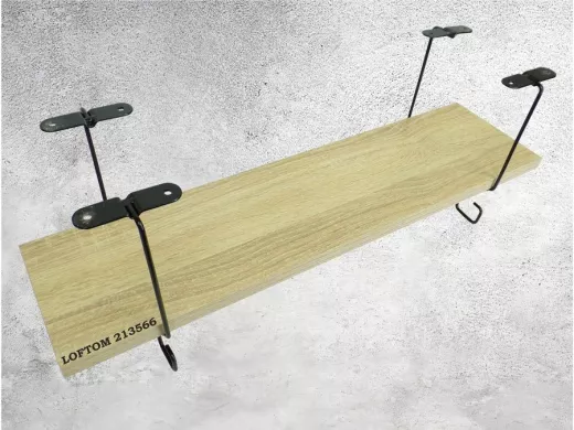 Полка подвесная под шкаф или стол черная, 60х15 см, дуб "LOFTOM 213566" высота 15см, с крючками