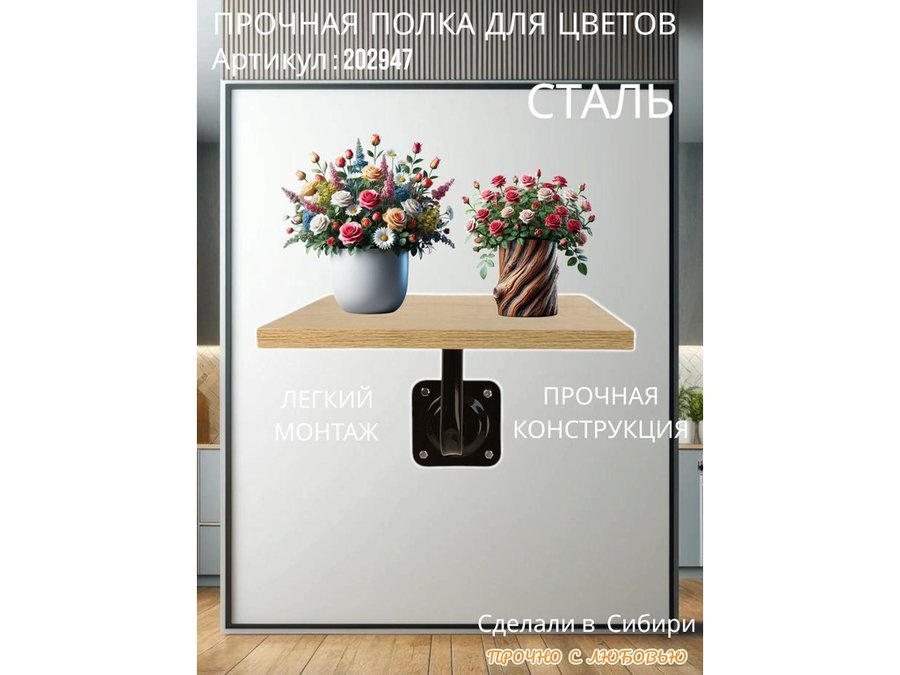 Полка для цветов настенная пьедестальная, размер 30х30см "LOFTOM-202947" цвет дуб сонома