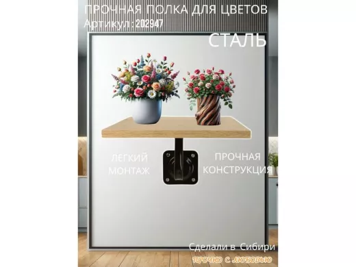 - Полка имеет надёжную конструкцию и может выдержать до 20 кг.