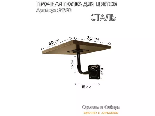 Полка для цветов настенная пьедестальная, размер 30х30см "LOFTOM-216428" цвет венге