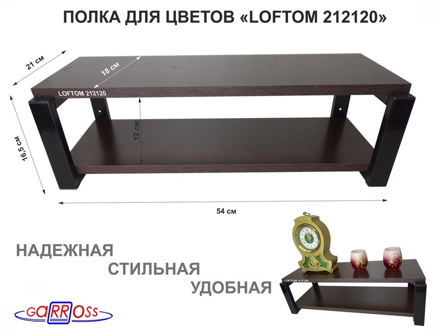 В корзину Купить в 1 клик Полка для цветов, серая "LOFTOM 212117" высота 15 см, с двумя полками 54х17,5 см, венге