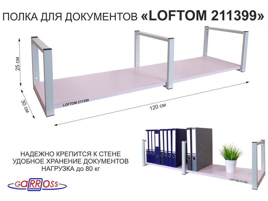 . Полки для папок-регистраторов и документов "LOFTOM" высота 25 см, полки 120х30см, 1 уровень